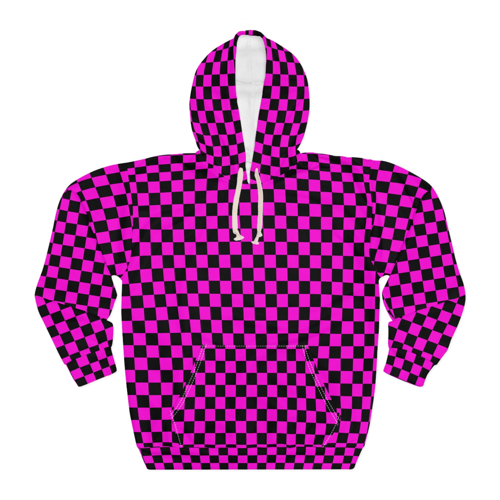 This Pullover Hoodie is made for warmth and comfort. Made to be easily customizable without white lines at the seams, this all-over print pullover hoodie is waiting for you to add a great design and it instantly becomes fashionable. It features a large front pocket, a hood with a drawstring, and is custom cut and sewn.